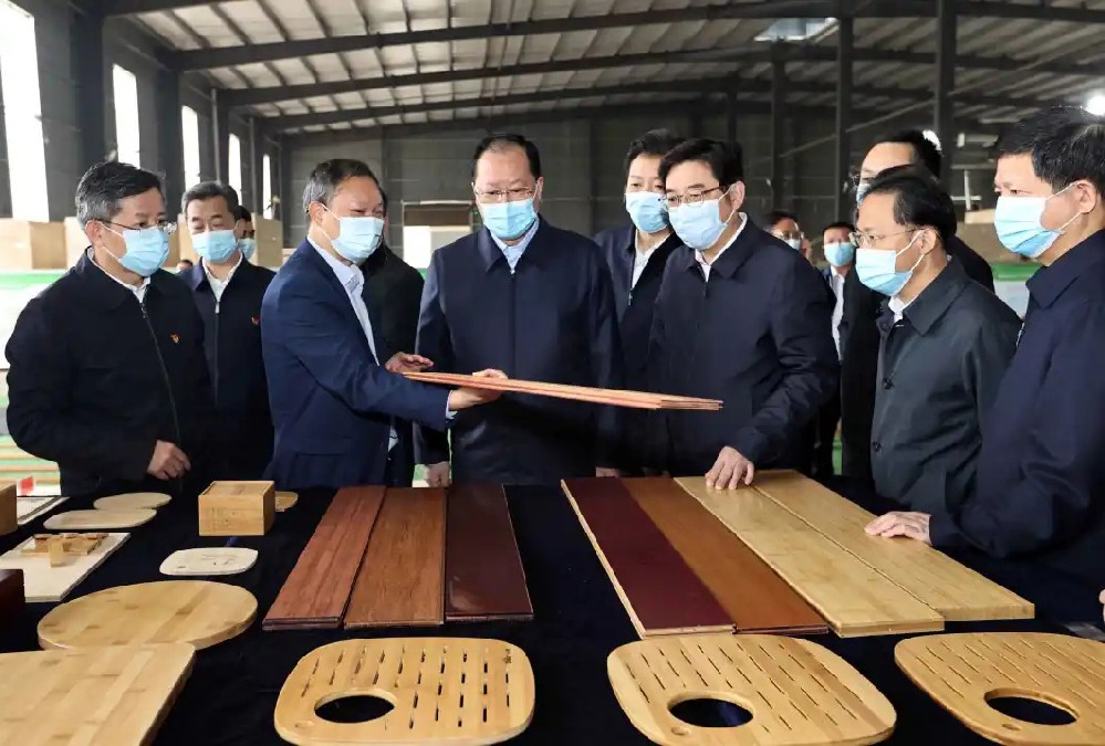 • 湖南省人大常委會黨組書記、副主任烏蘭到湖南桃花江竹材調研